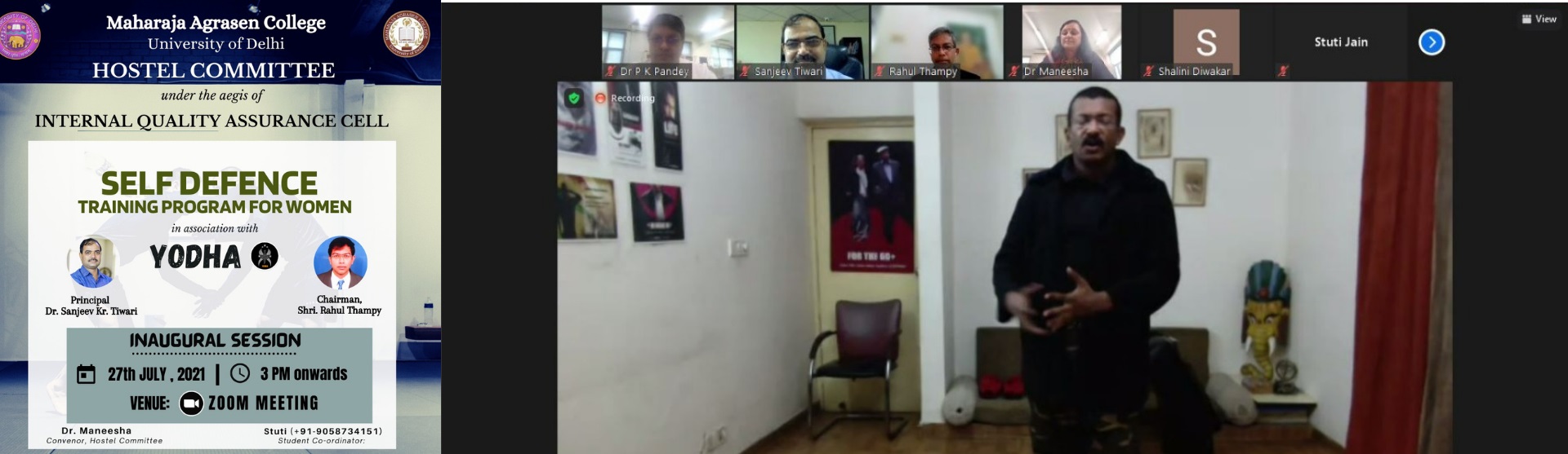 A 10 days online Add on Course on 'Legal Awareness' was organized for students by Delhi State Legal Authority in association with Maharaja Agrasen College to spread Legal Literacy amongst the younger generation, to spread awareness about important Laws/Statute enacted in India and also to spread aware about DLSA. The course was organized by the Internal Complaints Committee under the aegis of MAC-IQAC from 18 October 2020 to 10 November 2021. The course addressed important issues such as “Equal Access to Justice”- Social Justice and Constitution of India, Understanding Indian Criminal Justice System, Overview of Cyber Laws, Equality in Practice - Laws in force for Protection of Women, Functioning of Police Administration & Virtual Tour of Police Station, Contractual Liabilities & Rent Laws: Jurisprudence and Applications, ‘Rights of Children’ & ‘Wrongs by Children’ – Important legal Provisions, Work with Dignity-Insights of The Sexual Harassment of Women at Workplace (Prevention, Prohibition and Redressal) Act, 201, A Discussion on Purpose & Provisions of Right to Information Act, “Equal Access to Justice”- Role n Duties of DSLSA, Virtual Tour of DSLSA/DLSA Virtual Tour of District Court. An online test was conducted at the end of the course. A total of 134 students benefitted from the add on course. Internal Complaints Committee under the aegis of Internal Quality Assurance Cell and East District Legal Services Authority organized an online awareness programme on the topic “Sexual Harassment at Workplace” on 10 February 2021. Ms Sonal Chauhan, Legal Aid Counsel, from East District Legal Services Authority explained in detail about various laws pertaining to Sexual harassment at workplace to the audience which comprised of students, teaching faculty and non-teaching staff. Furthermore, ‘Yodha’, an online self-defence training program was organised for women on 27 July 2021.