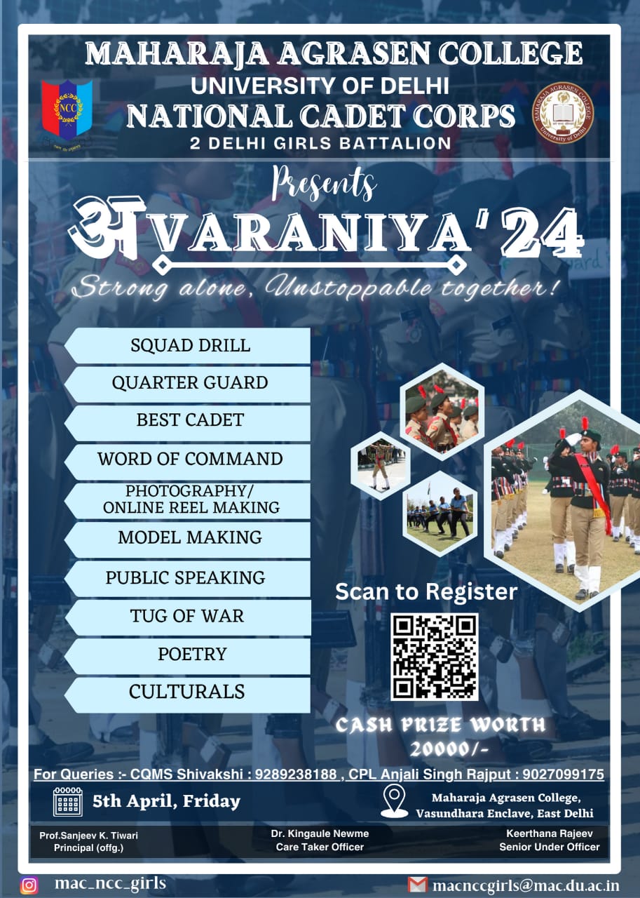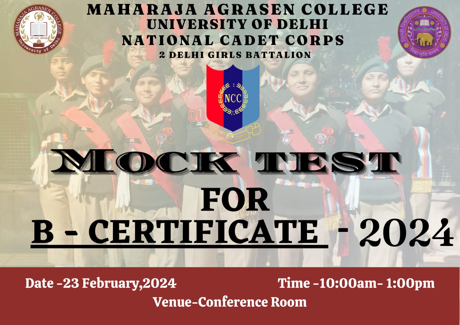 Maharaja Agrasen College got the raising for Girls NCC (Army Wing) under 2 Delhi Girls Battalion, Rohini and Sector 18. Henceforth, started its very first batch of Girls NCC in the Academic Session of 2020-21. The NCC Troop allotted to the college was 1Coy (Company) with 160 strength.